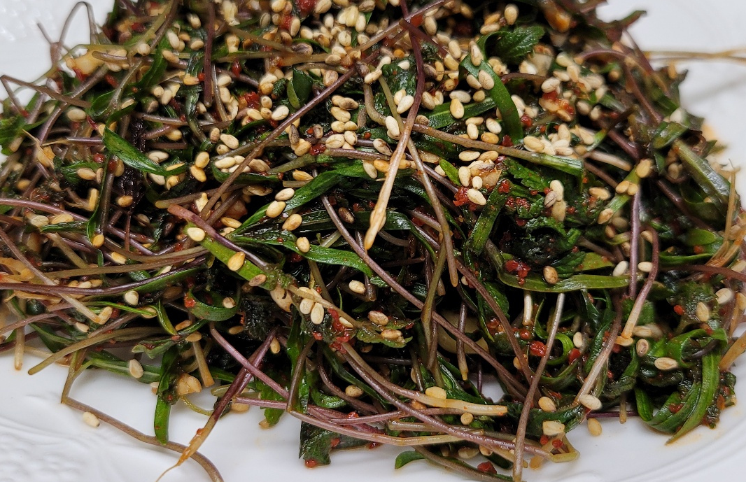 | 환삼덩굴 무침 | 데친 뒤 된장과 참기름에 무침 |