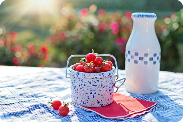 "무더운 여름, 신선한 토마토가 익어가는 모습처럼 여러분의 소중한 순간들도 여름의 열기로 가득 차기를 바랍니다."